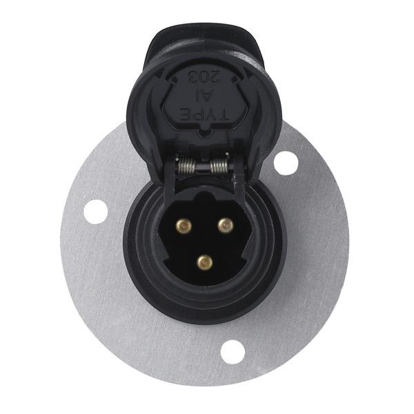 Komplett für Fahrzeugeinbau. Flanschstecker (Calix) mit Klappdeckel IP44 und 2 m Einbaukabel für Fahrzeugeinbau. Einfache und sichere Montage am Fahrzeug durch Montageplatte (Flanschdurchmesser 63 mm, Montagebohrung 29 mm), inkl. Montagematerial auch für wahlweise verdeckten Einbau z.B. im Kühlergrill. Kabelende mit freien Kabelenden, 230 V AC / 16 A, 2pol + E, Kabel 3 x 1,5 mm².