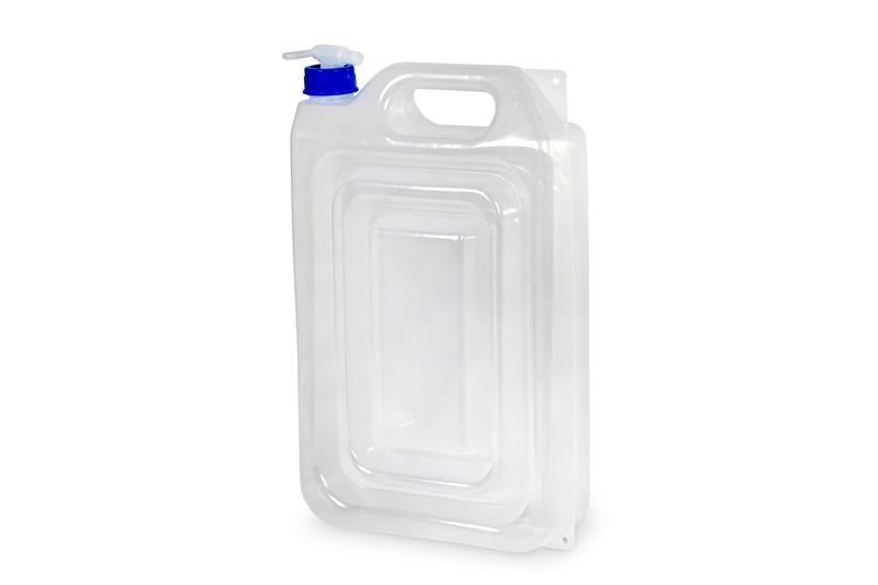 Praktische Wasserkanister. Leicht, handlich, zusammenfaltbar und schnell zu verstauen. Aus transparentem Kunststoff in Lebensmittelqualität. BPA-frei. Mit Ablaufhahn und Tragegriff. Temperatur -20°C bis 50°C.