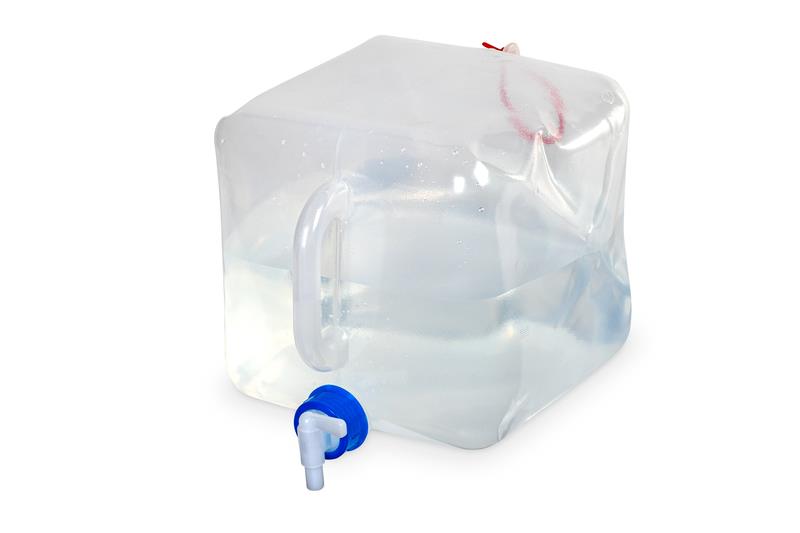 Praktische Wasserkanister. Leicht, handlich, zusammenfaltbar und schnell zu verstauen. Aus transparentem Kunststoff in Lebensmittelqualität. BPA-frei. Mit Ablaufhahn und Tragegriff. Temperatur -20°C bis 50°C.