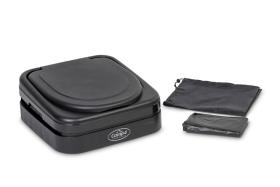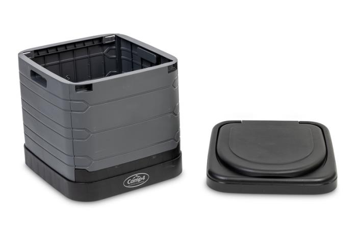 Faltbare Campingtoilette in schwarz / grau. Schnell und einfach aufgebaut, ca. 1 Minute Aufbauzeit. Belastbarkeit bis zu 150 kg. Material: PP. Dank des Faltmechanismus und der praktischen Tragetasche lässt sich die Campingtoilette platzsparend verstauen.