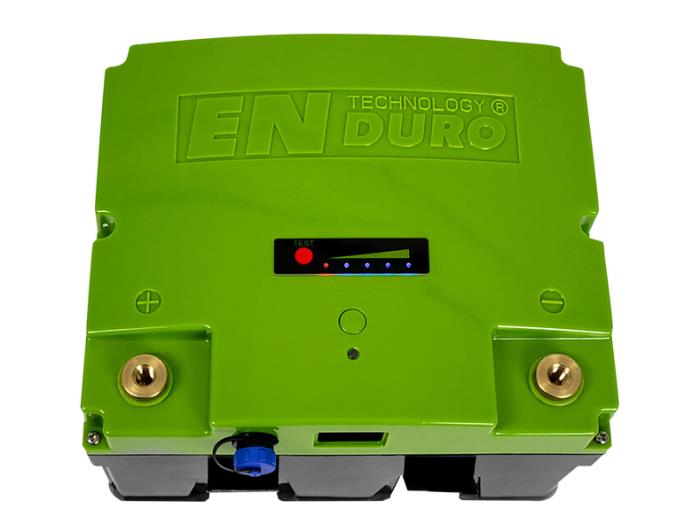 Lieferung mit kabelgebundenem Ein-/Aus-Schalter, Montageplatte und Bluetooth-Modul (Über Enduro App Batteriestatus, Zustand, Temperatur und Ladezustand überwachen).