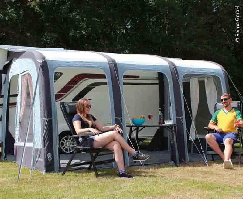 Det ideelle campingvogns luftfortelt for rejsende campister i sydlige Europa eller øvrige varme vejrforhold, takket være det åndbare Pro Climate teltdugs-materiale. Evora Air er forsynet med Dura-Tech Single Point Inflation System, der sikrer dig et holdbart, stærkt fortelt, der kan opstilles hurtigt og nemt ved oppumpning blot 1 sted. Åndbarheden af Pro Climate stoffet reducerer den indre temperaturer og kondens, mens Phoenix Mesh ventilationssystemet i sidedørene sikrer en behagelig luftcirkulation og holder samtidig insekter ude af forteltet. Store tonede panoramavinduer reducerer blænding fra solen. Hvide glidende traditionelle gardiner sikrer privatlivet når det behøves. En sideanneks kan også købes, valgfri montering til begge sider.