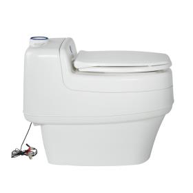Separett Villa 9010 er et separat toilet med høj kapacitet (23 l). Tømning sker ca hver 4. - 6. uge (til 4 personer). Toilettet kan drives med 230 V netstrøm eller 12 V solceller/batteristrøm. Energiforbruget er 2,5 W / 210 mA og er derfor ideel til batteri/solcelledrift. Batteriet er ikke inkluderet i leveringsomfanget.