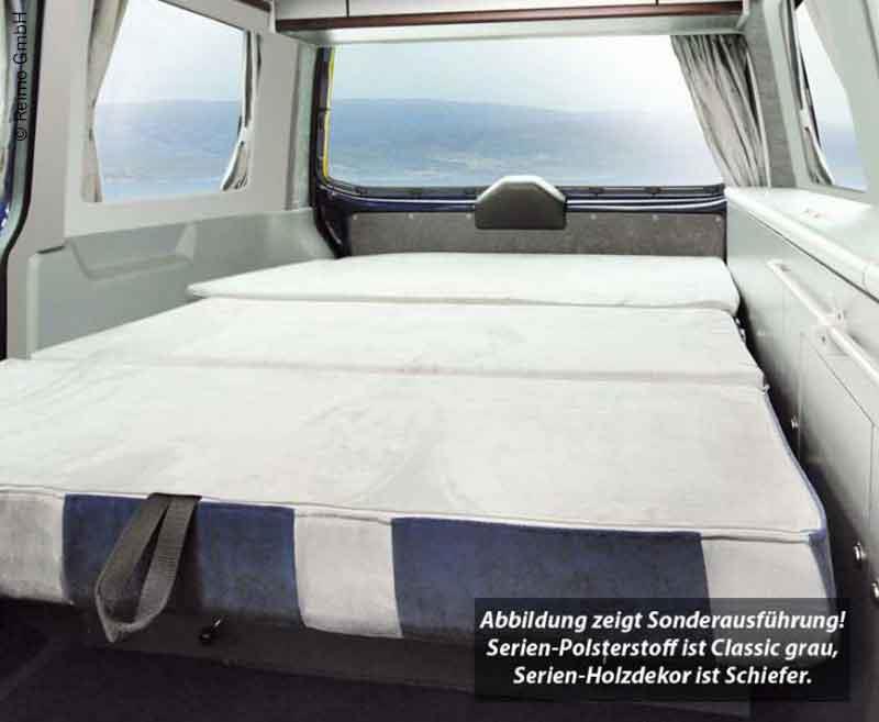 Med integrerede, inddragelige nakkestøtter, 3-punkts sikkerhedsseler, foldet bagsædepude (opbevaringsplads under bagkudden 46 cm) og sidepanel. Fjernelse af frontpanelets eller skuffens ekstraudstyr under sædet giver mulighed for gennemlastning på ca. 600 mm bred 280 mm højde og 2400 mm længde , Perfekt til skiløb, snowboarding eller surfing. Bestil venligst for sengetøjet enten frontpanelet eller skuffen (se bordtilbehør).