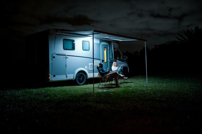 Neugestaltung mit einer einfacheren und schnelleren Befestigung an der Markise, COB-LEDs und Stromversorgung über Jack-Anschluss und Zigarettenanzünder (12-V-Steckbuchse).