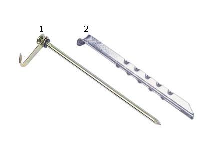 1. Peg med krog: med krog fastgjort. Galvaniseret stål. Ø 7 mm. 5 stk
