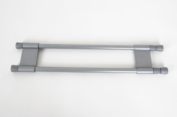 Teleskopspændestænger med variabel længde til fx køleskab eller spisekammer. Med krydsbøjler. Materiale: plastik.