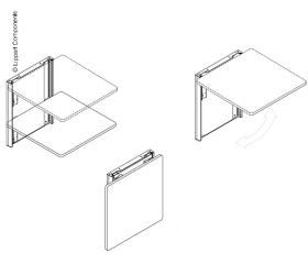 Væghængt klapbordsstel 600 x 460 mm, højdejusterbar, leveringsomfang uden bordplade